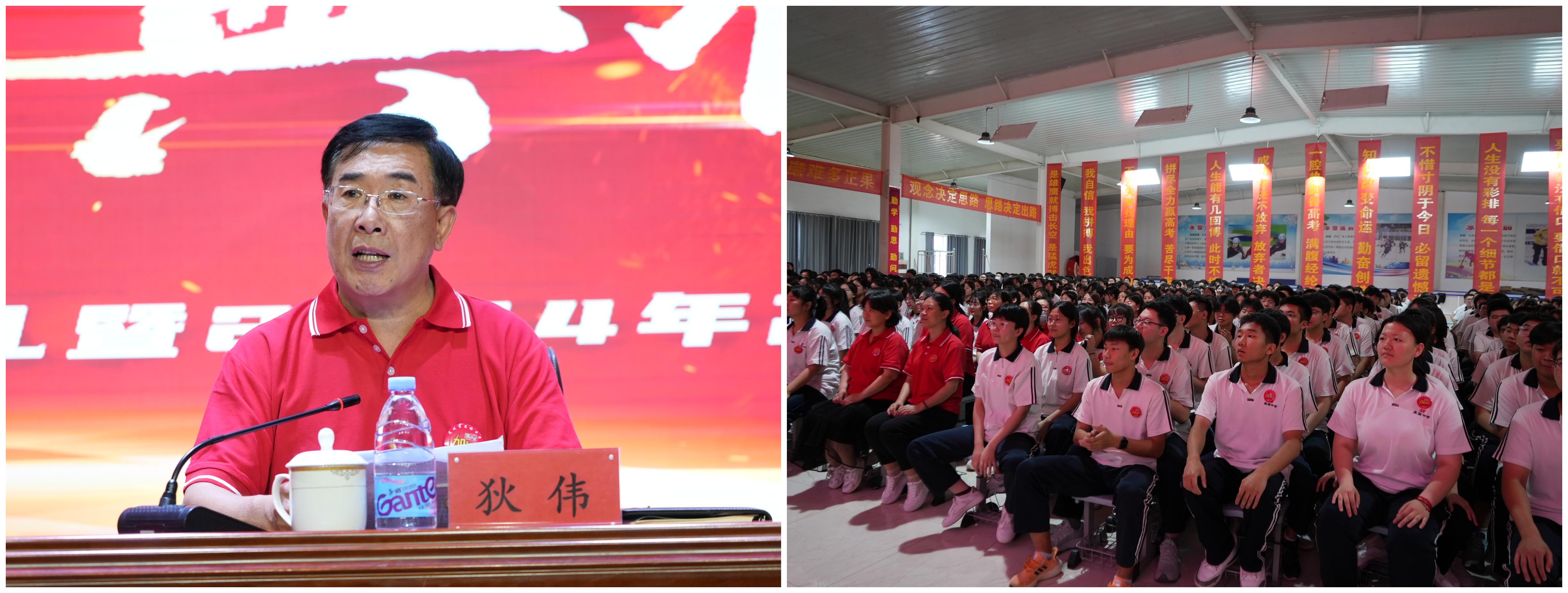 6月3日上午,學(xué)校在報告廳舉行畢業(yè)典禮暨高考動員大會,校領(lǐng)導(dǎo)和高三全體師生齊聚一堂,共同感受這一莊重又激動人心的時刻。學(xué)校黨總支書記楊劍波出席典禮并致辭,校長狄偉主持大會。