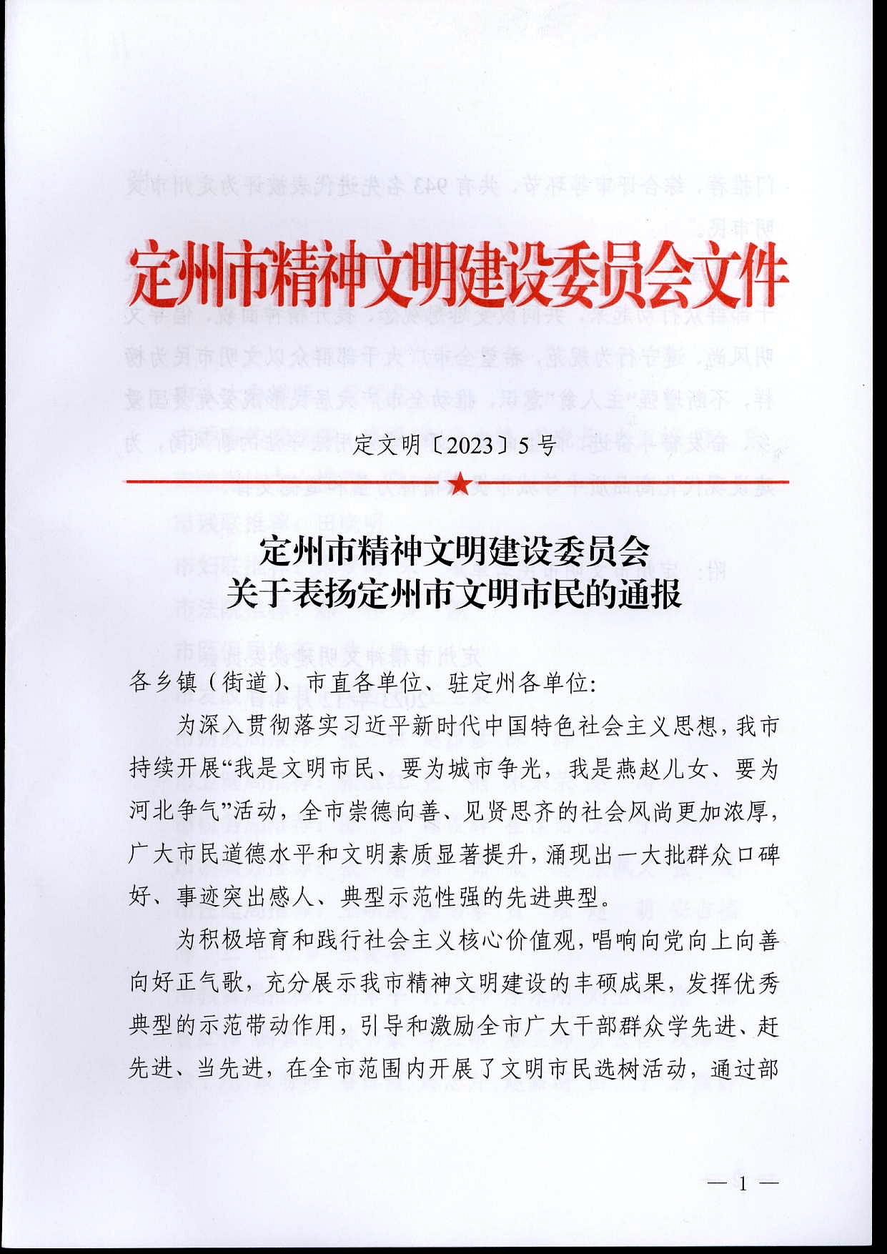 附:《定州市精神文明建設(shè)委員會(huì) 關(guān)于表?yè)P(yáng)定州市文明市民的通報(bào)》(部分名單)