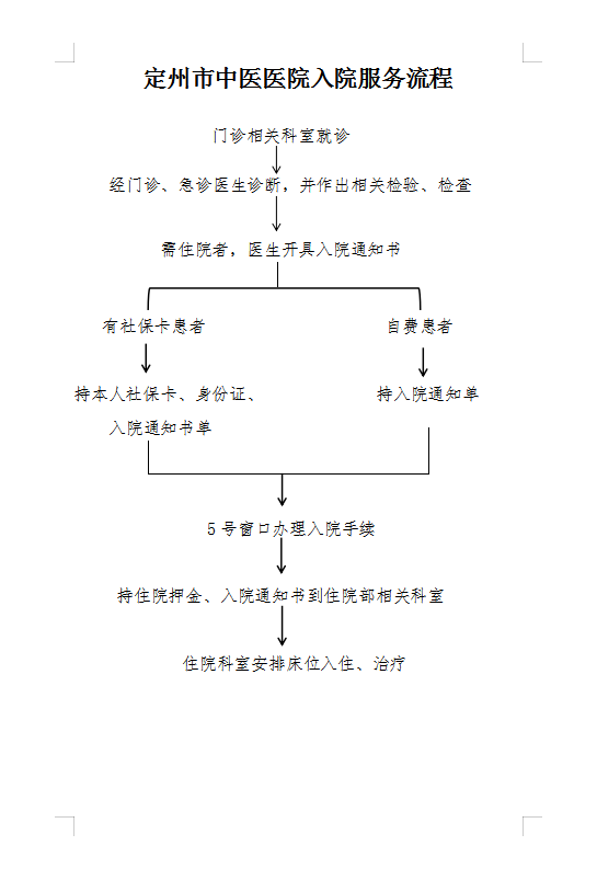 定州市中醫(yī)醫(yī)院入院服務(wù)流程