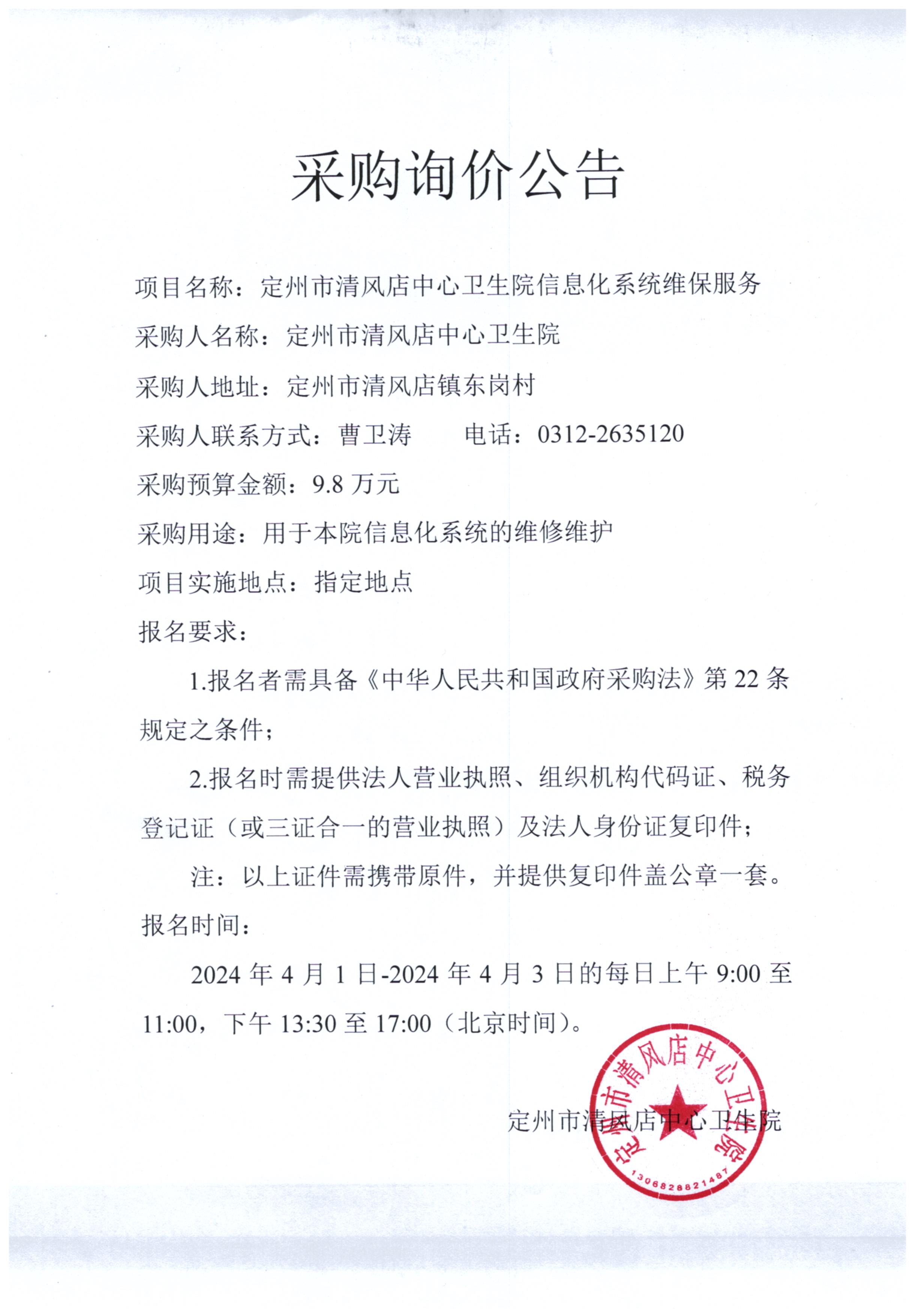 清風(fēng)店中心衛(wèi)生院采購(gòu)詢價(jià)公告